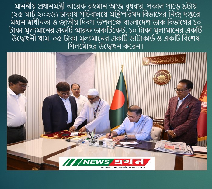 ঢাকা: মহান স্বাধীনতা ও জাতীয় দিবস উপলক্ষে বাংলাদেশ ডাক বিভাগের ১০ টাকা মূল্যমানের একটি স্মারক ডাকটিকিট উদ্বোধন করেছেন প্রধানমন্ত্রী তারেক রহমান।